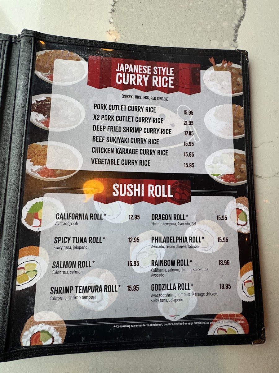 Avocado,shrimp tempura, karaage chicken, spicy tuna, jalapeño